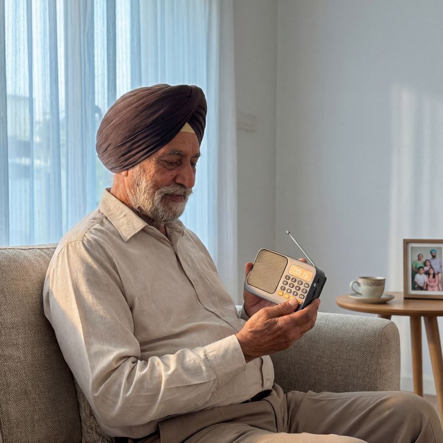 The Guru Di Bani Listening Radio is designed for calm moments at home — whether for Naam Simran, quiet reflection, or gentle background listening. Thoughtfully made for parents, elders, and anyone seeking spiritual connection through sound.